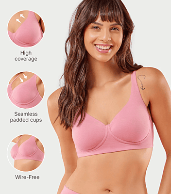Enamor Innovations Bamboo Bliss, Everyday, Full Support, Women's T-Shirt Bra - Super Soft, Naturally Absorbent & Antimicrobial, Padded, Wirefree, High Coverage- A077