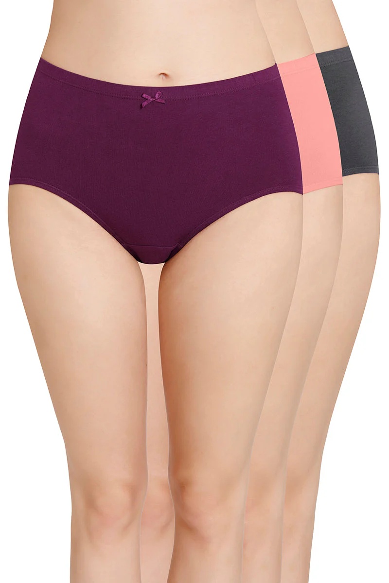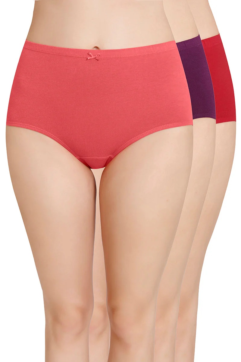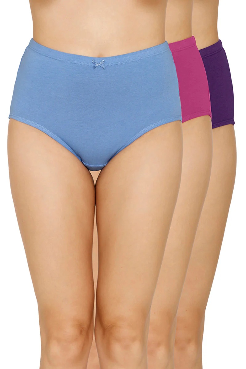 Insert Elastic Waistband Full Brief Solid Assorted Panty (Pack of 3 Colors & Prints May Vary)
